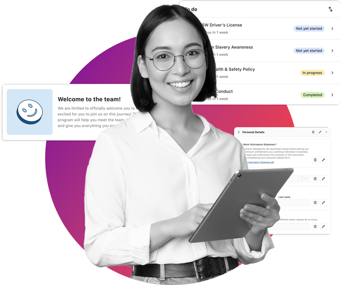 Give every new hire a personalised welcome. Showcase your culture with branded portals, welcome messages, videos and team introductions.